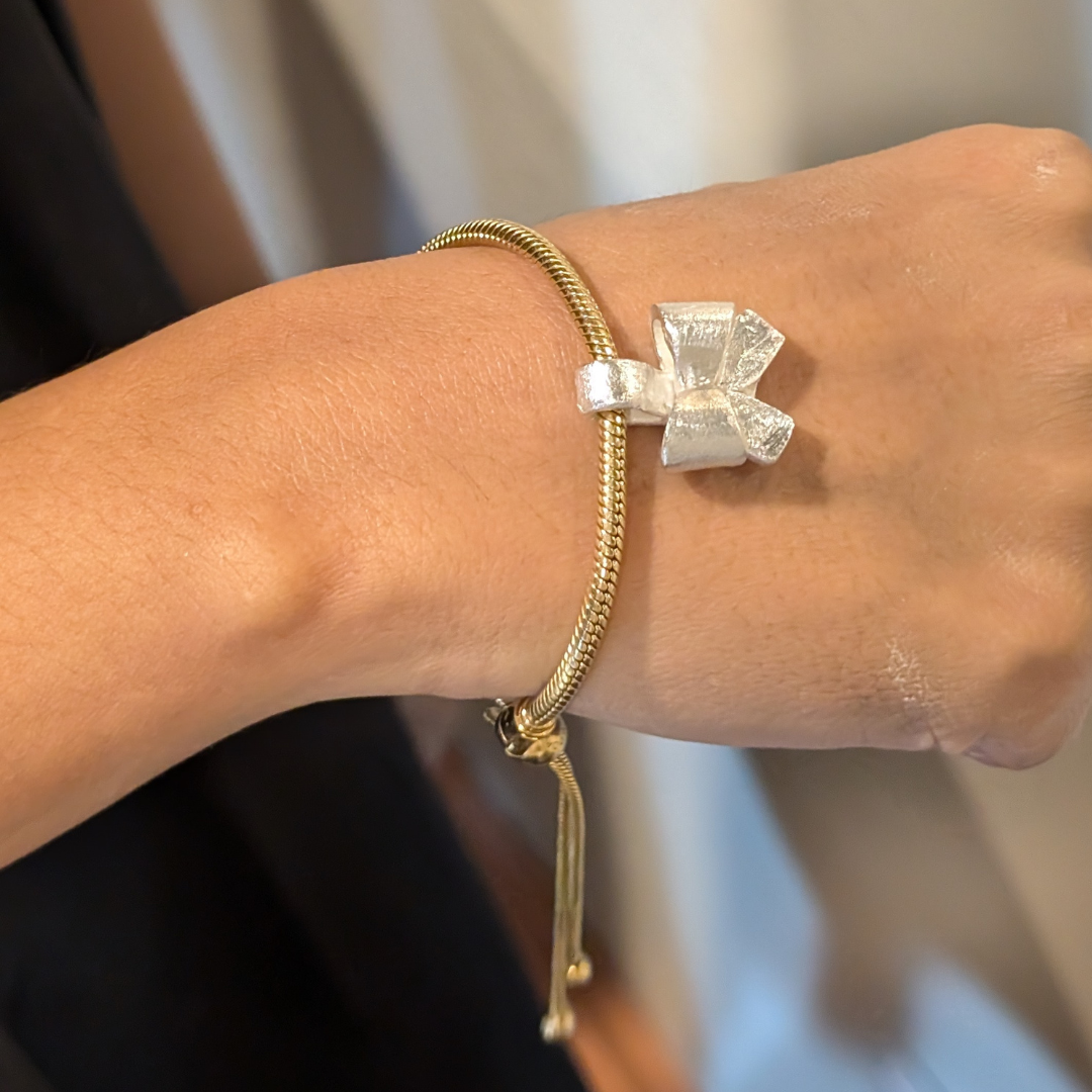 Silver metal clay is made using recycled silver particles, binder and water. Unlike clay used in ceramics, Silver clay is delicate and sensitive. After properly molding the clay, it is immediately dried and fired. Once fired, the clay will become 99.9% silver.