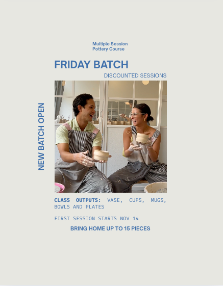 Marita’s sessions focus on teaching strong pottery foundations. To help you concentrate on learning rather than rushing through projects, you’ll have the option to book unguided studio time on your own schedule. This allows you to continue working on your personal pieces at your own pace.