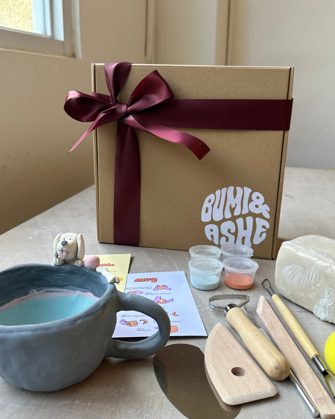 Create your own ceramic pieces with our DIY Pottery Kit—perfect for beginners and ideal as a thoughtful gift. Everything you need is included, plus step-by-step guides for mugs, matcha bowls, ceramic goblets, and travel cups.