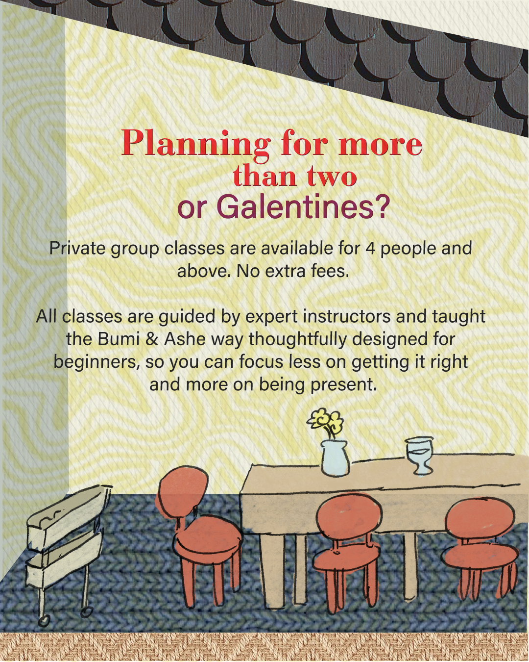 Our private experience requires a minimum of 4 pax, but our Makati studio can hold a lot of students (up to 100 pax even!) send us a message on Instagram and we will assist you ASAP.