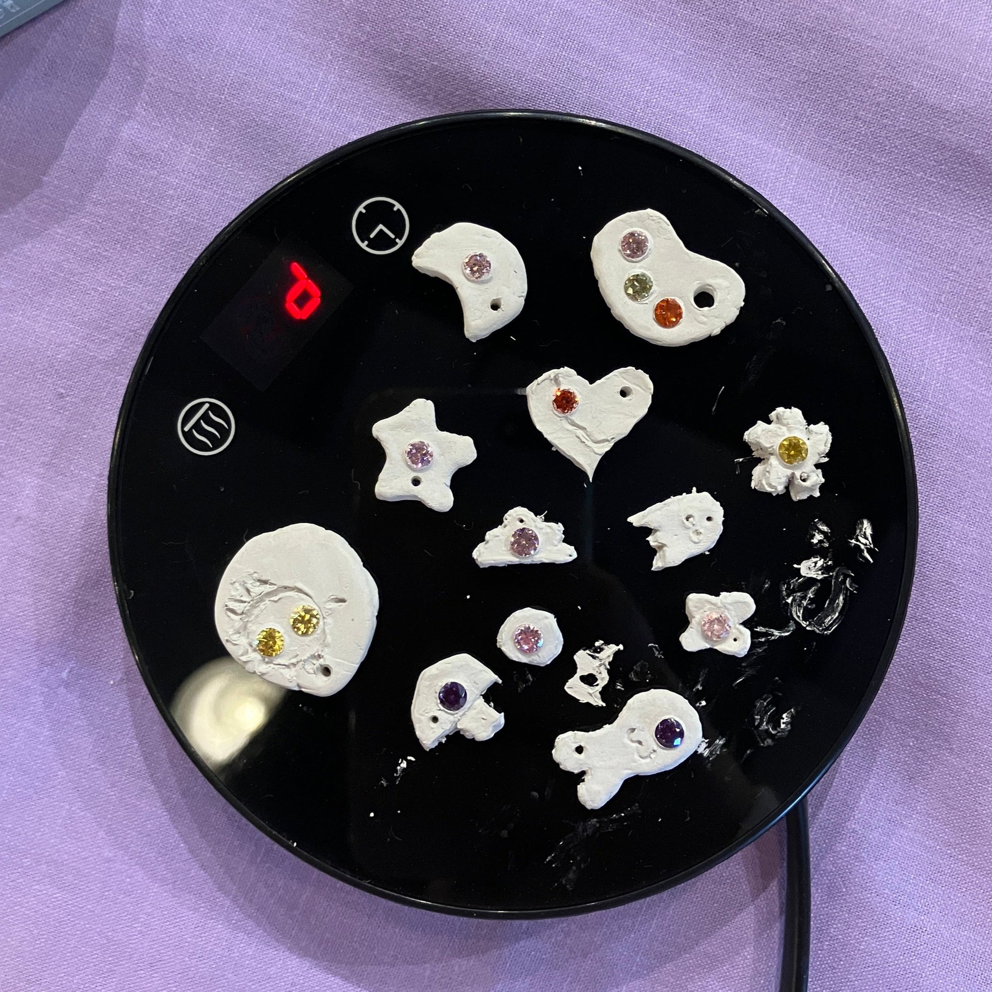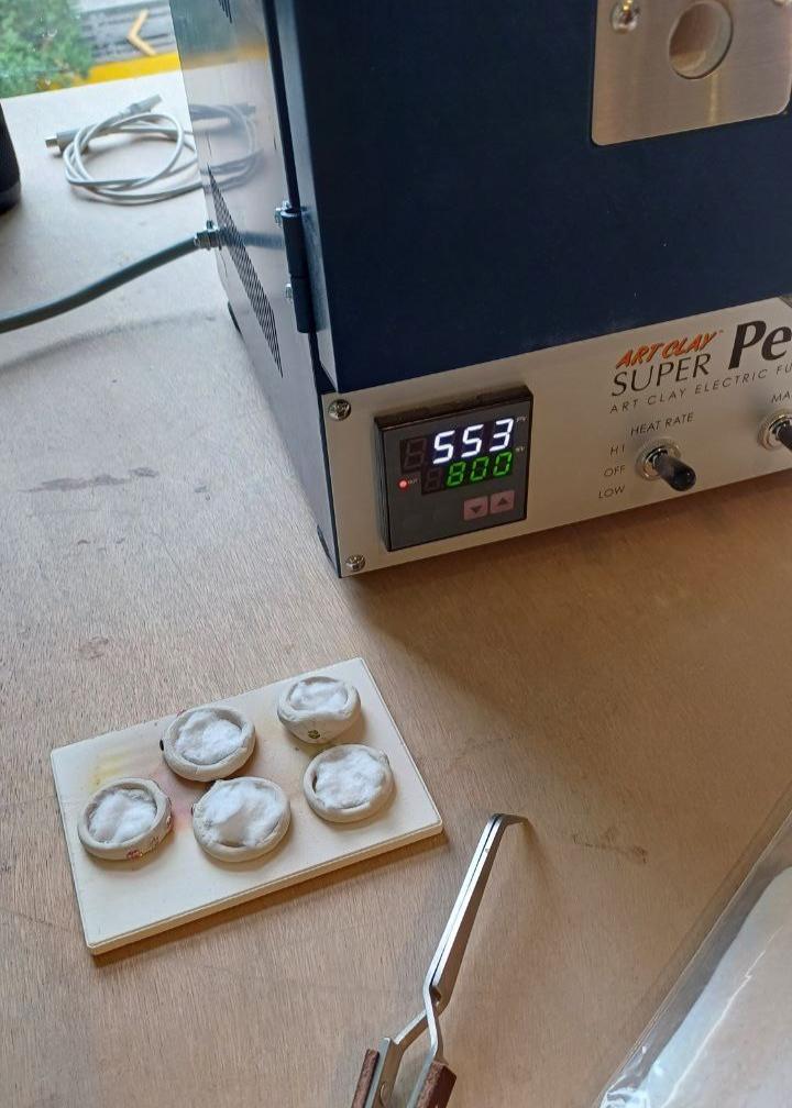 Silver metal clay is made using recycled silver particles, binder and water. Unlike clay used in ceramics, Silver clay is delicate and sensitive. After properly molding the clay, it is immediately dried and fired. Once fired, the clay will become 99.9% silver.