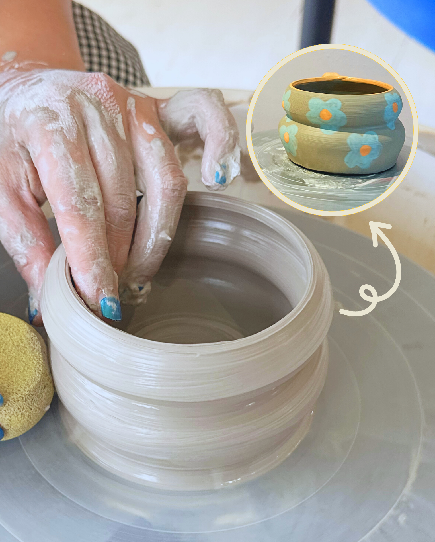 - What to expect: This class focuses on form which means you will not have time to attach handles or paint. This class is perfect for you if you want to learn the foundation of wheel throwing and want to bring home tableware like bowls, plates or cups